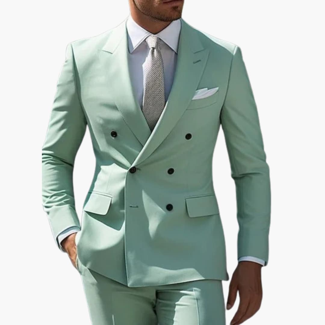 Zweiteiliger Herrenanzug mit zweireihigem Sakko und Spitzfacon